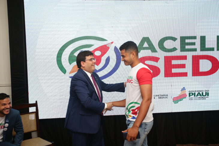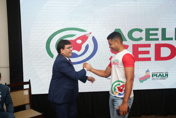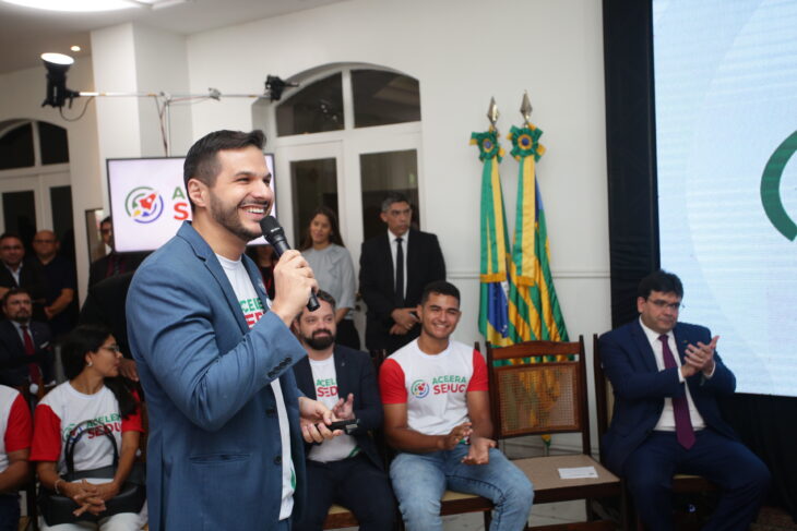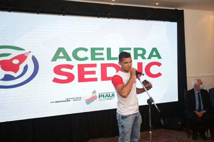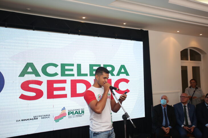 Celebrando o lançamento do programa Acelera Seduc, o estudante Francisco Rafael, aprovado em 1º lugar – cotas no curso de medicina da Universidade Federal do Piauí (Ufpi) e que concluiu o Ensino Médio no Centro Estadual de Tempo Integral (CETI) Cônego Cardoso, discursou sobre o valor do ensino para a conquistas dos estudantes.