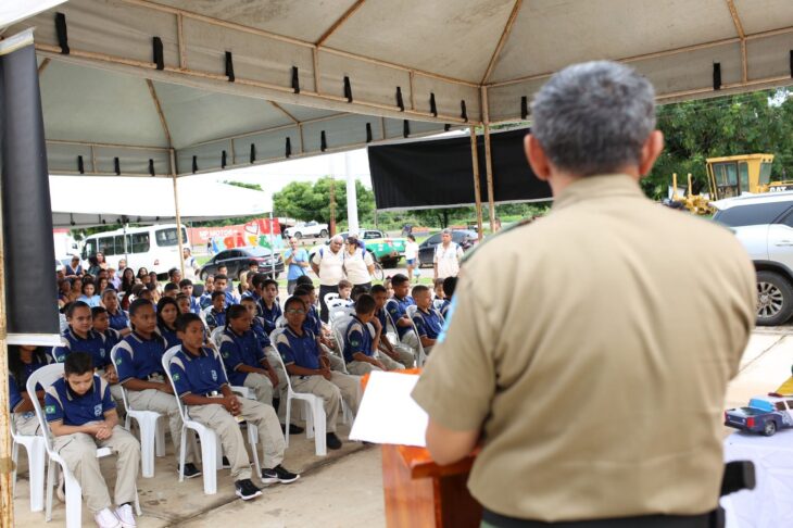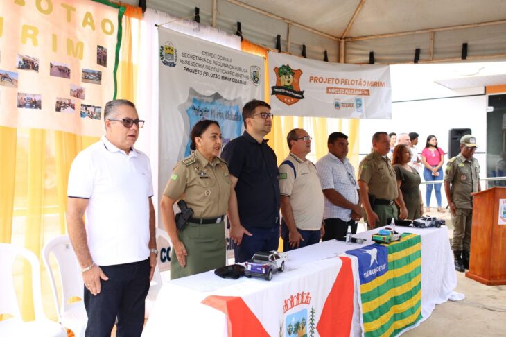 O Comando de Polícia Comunitária (CPCOM) da Polícia Militar do Estado do Piauí reimplantou neste sábado (1º) o Projeto Pelotão Mirim Cidadão no município de Nazária. A solenidade contou com a presença do secretário de Segurança Pública Chico Lucas, do prefeito Osvaldo Bonfim e da coronel Elza Rodrigues, comandante do CPCOM, que representou o Comando-Geral, entre outras autoridades.