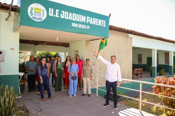 Ao lado da secretária municipal de Educação de Bom Jesus, Oldênia Guerra; do diretor de escola, Gergio Famarion; todo o corpo docente e alunos da escola, Washington Bandeira falou sobre a meta de fortalecer o regime de colaboração entre o Estado e os municípios por meio do Programa de Alfabetização na Idade Certa e do Pacto pela Educação.