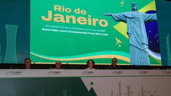 O Rio de Janeiro foi anunciado nesta terça-feira (27) como cidade que irá sediar o Campeonato Mundial de Tênis de Mesa, em 2029. A escolha foi anunciada durante a Assembleia Geral da Federação Internacional de Tênis de Mesa (ITTF), em Doha, no Catar.