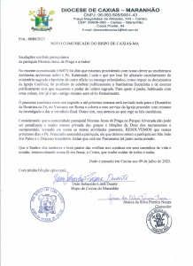 “O padre Raimundo da Luzia foi afastado cautelarmente do ministério sagrado e também de outro ofício ou encargo eclesiástico, como requer os documentos da Igreja Católica; foi proibido de celebrar publicamente a Santíssima Eucaristia e de exercer publicamente atos que requerem o poder da ordem sagrada “, afirma o documento.