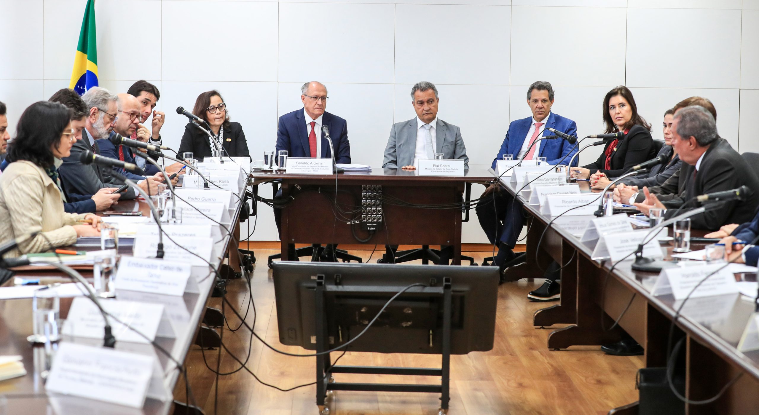 Nesta terça-feira, o vice-presidente e ministro do Desenvolvimento, Indústria e Comércio, Geraldo Alckmin, reuniu-se com empresários do setor produtivo para buscar alternativas ao tarifão imposto pelos Estados Unidos ao Brasil. A reunião ocorreu no Palácio do Planalto com a presença de ministros como Fernando Haddad (Fazenda), Rui Costa (Casa Civil), Simone Tebet (Planejamento) e Silvio Costa Filho (Portos e Aeroportos).
