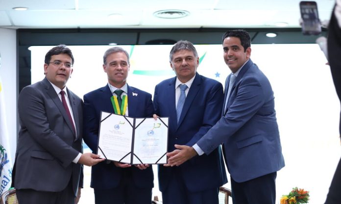 A honraria foi entregue pelo presidente do TCE-PI, conselheiro Kennedy Barros, que destacou o papel do ministro como referência ética e técnica no cenário jurídico nacional.