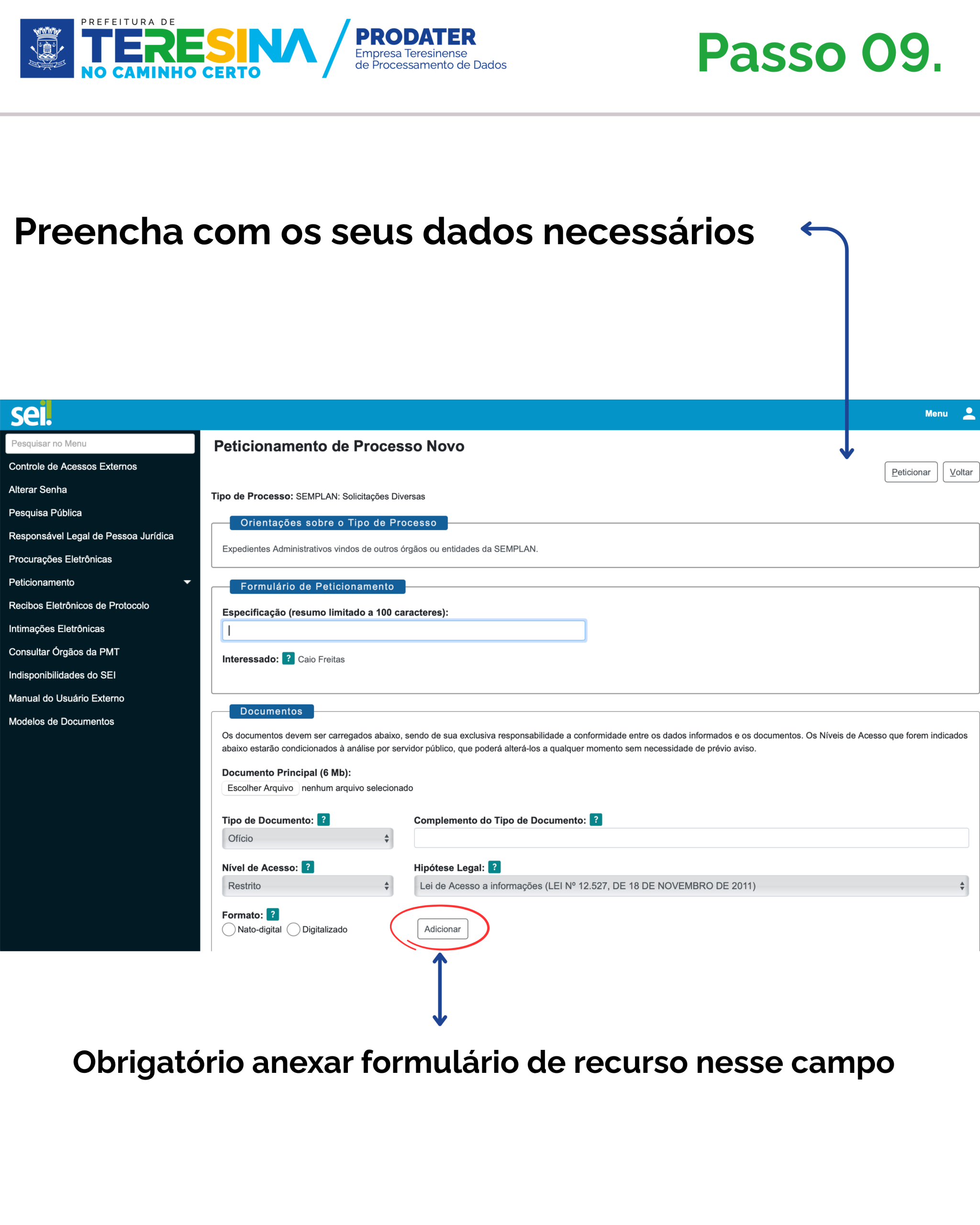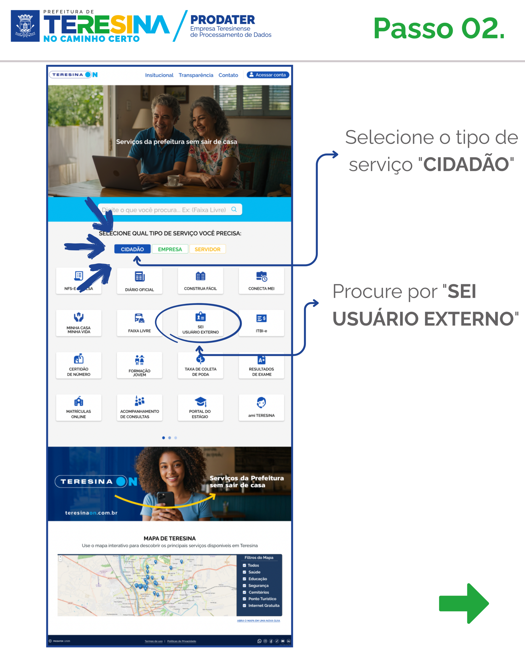 Para recorrer pela internet, o candidato deve acessar o site www.teresinaon.com.br, clicar no ícone “SEI USUÁRIO EXTERNO” e preencher os dados solicitados. CONFIRA O PASSO A PASSO ABAIXO.