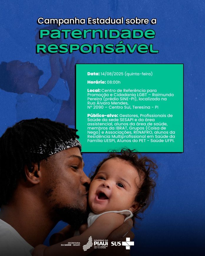 A Secretaria de Estado da Saúde do Piauí (Sesapi), por meio das Coordenações de Atenção à Saúde do Adulto e do Idoso e de Equidade em Saúde, realiza na próxima quinta-feira, (14), a Campanha Estadual sobre Paternidade Responsável, com o tema “Diálogos sobre Paternidades Equitativas”. O evento acontecerá a partir das 8h no Centro de Referência para Promoção e Cidadania LGBT – Raimundo Pereira (prédio do SINE-PI), localizado na Rua Álvaro Mendes, nº 2090, Centro Sul de Teresina.