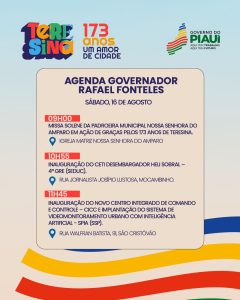 Confira a agenda do governador Rafael Fontesles deste sábado (16), data do aniversário de 173 anos de Teresina.