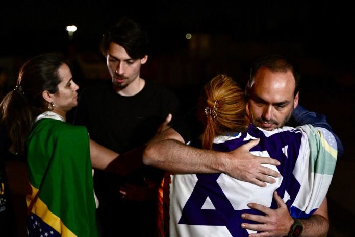 Jair Renan afirmou ter viajado à capital nesta segunda-feira para estar próximo da família no momento considerado decisivo. “Cheguei hoje a Brasília para estar ao lado do meu pai em mais uma etapa desta ilegal e implacável perseguição”, declarou, recebendo aplausos dos simpatizantes presentes.