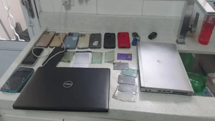 No imóvel, foram apreendidos dez celulares, sete notebooks, sete headphones e sete carregadores, além da quantia de R$ 7,7 mil em espécie. Ainda não há informações sobre as vítimas lesadas pelo bando.