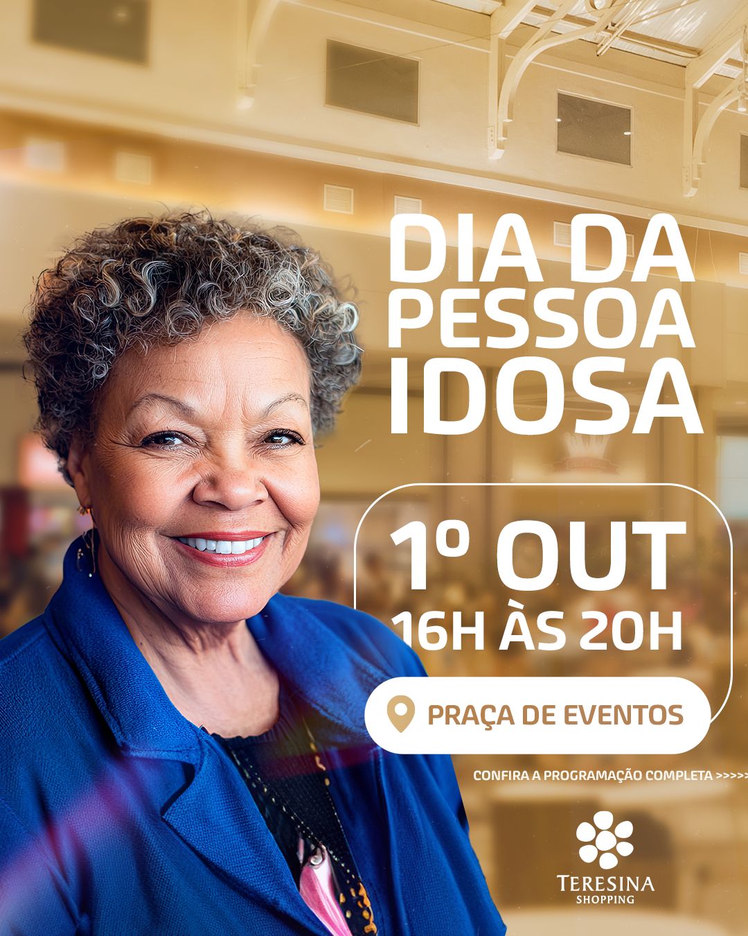 O mês de outubro se inicia em celebração ao Dia da Pessoa Idosa, uma data dedicada a pessoas que fazem parte de lindas histórias e marcam experiências incríveis na vida de cada um. Para homenagear e valorizar esse público, o Teresina Shopping preparou uma programação especial repleta de aprendizado, descontração, movimento e muita celebração.