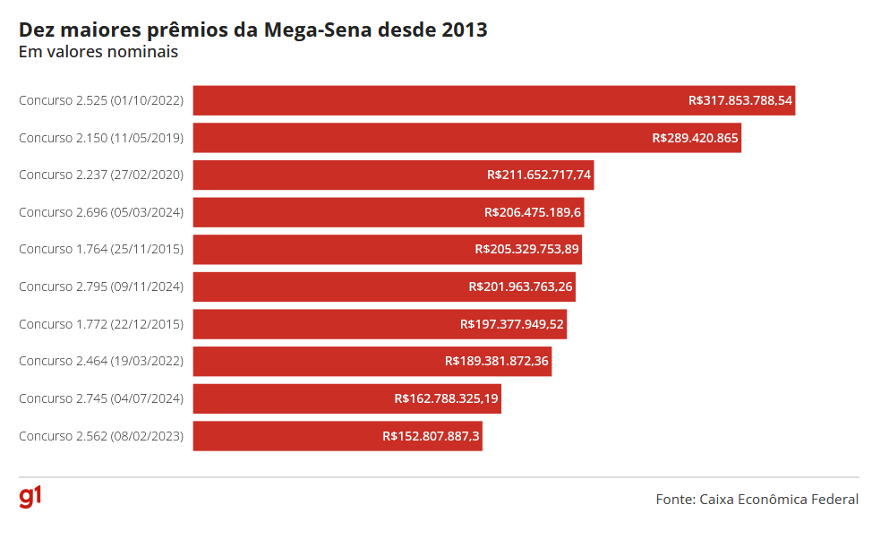 As apostas podem ser realizadas até as 20h (horário de Brasília) em qualquer lotérica do país ou por meio do site e aplicativo Loterias Caixa, disponíveis em smartphones, computadores e outros dispositivos.