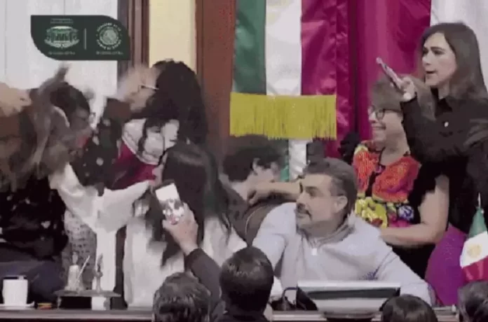 Eles acusaram a maioria governista do Morena, um partido de esquerda, de violar um acordo político para criar um novo órgão de investigação, o que deu início ao bate boca. Os grupos trocaram xingamentos e gritos, mas depois passaram a se agredir com empurrões e até puxões de cabelo.