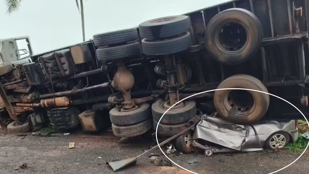 O caminhão, por motivos ainda a serem divulgados, perdeu o controle da direção, rodou na pista e tombou sobre o Volkswagen Gol, que seguia no sentido contrário. O veículo atingido ficou destruído.