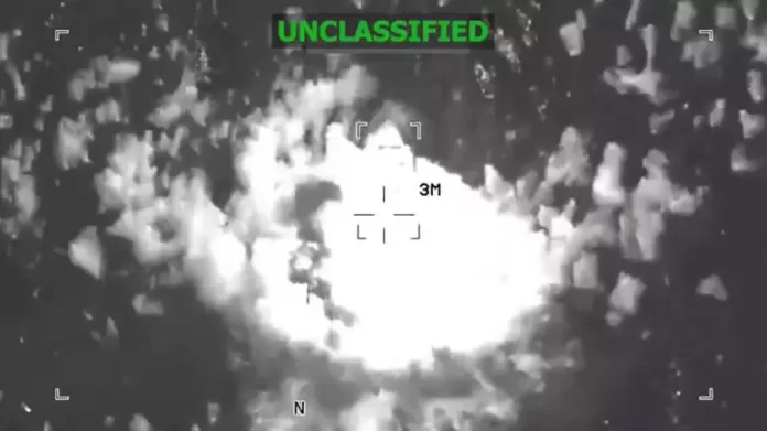 A publicação, acompanhada de um vídeo, mostra bombardeios às embarcações em alto mar.