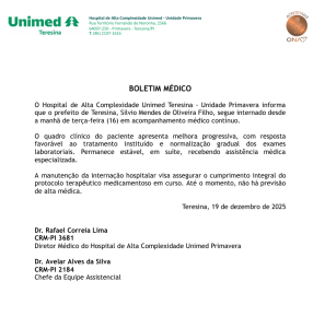 O prefeito de Teresina, Silvio Mendes, permanece internado e sem previsão de alta, de acordo com um boletim médico divulgado nesta sexta-feira (19) pelo hospital particular onde ele está sendo acompanhado.
