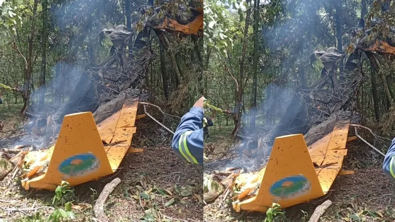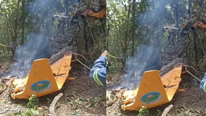 A aeronave, utilizada para pulverização de agrotóxicos, bateu em árvores antes de cair perto de uma estrada municipal. O local do acidente foi isolado para o trabalho da perícia.