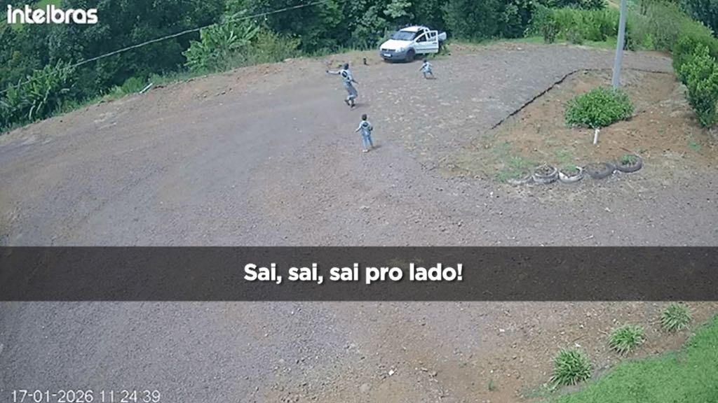 Ao ouvir os gritos de socorro dos filhos, William Furlan saiu do galpão e se deparou com a caminhonete já desgovernada. Nas imagens, é possível ver que uma das crianças, ao saltar, tenta instintivamente segurar o veículo antes de ser afastada pelos gritos de desespero do pai. A segunda criança pula logo em seguida, instantes antes de o carro atingir o declive acentuado.