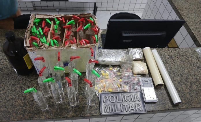 “No local, com autorização da proprietária do imóvel, os policiais realizaram buscas e encontraram, no quarto do filho da moradora, 66 comprimidos de ecstasy, 61 frascos de lança-perfume, dois pedaços prensados de maconha, um pacote pequeno de substância análoga a crack, uma balança de precisão, dois rolos de papel filme e um recipiente grande contendo lança-perfume”, explica a PM-PI.