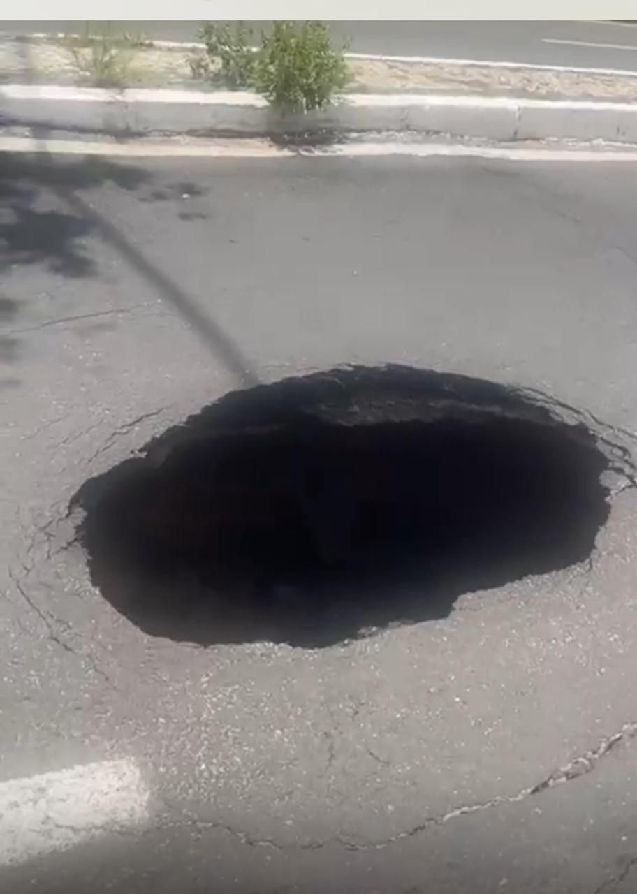 Informação preliminar indica que o buraco pode ter sido ocasionado pelas fortes chuvas dos últimos dias.
