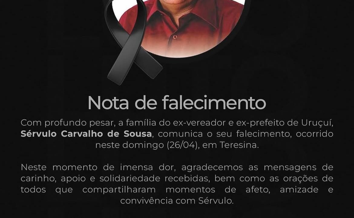 O pai da jornalista Sávia Barreto, o ex-vereador e ex-prefeito de Uruçuí, Sérvulo Carvalho de Sousa, faleceu neste domingo (26), em Teresina. A informação foi divulgada pela família por meio de nota de falecimento nas redes sociais.